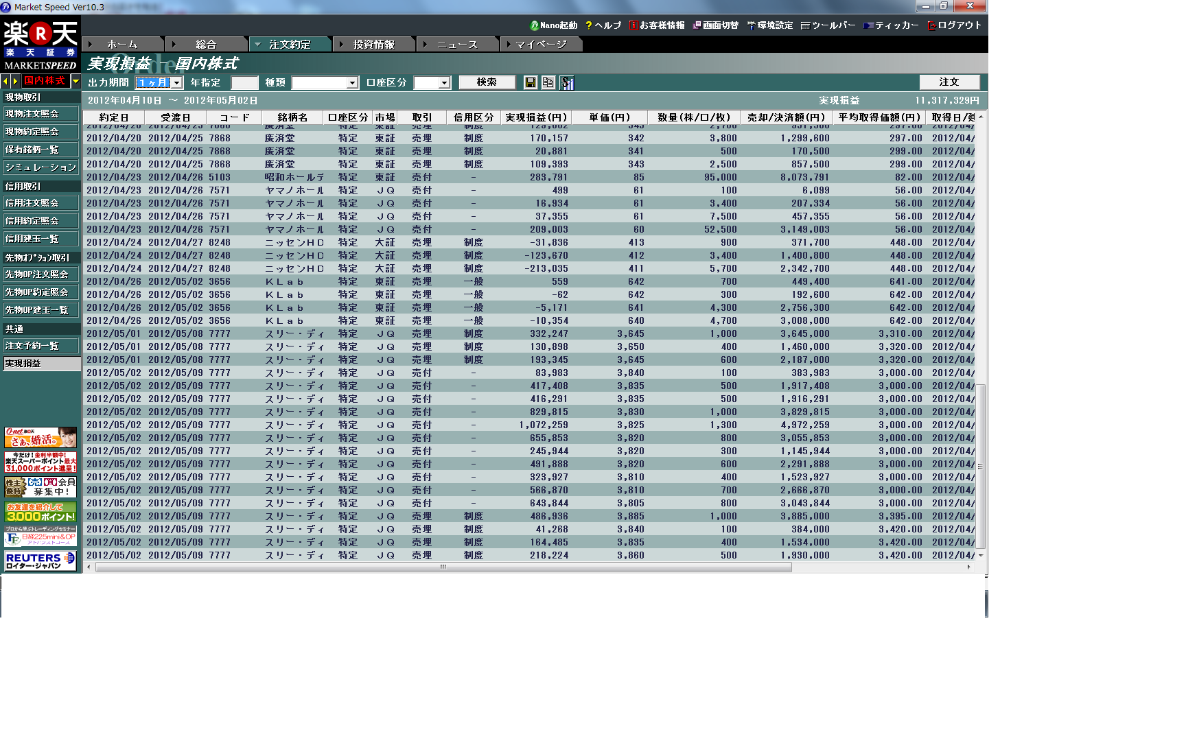 PTS取引結果(勝) ( 4 )